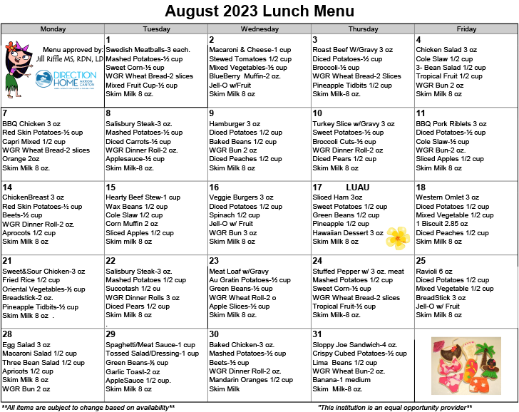 Aug 2023 lunch menu