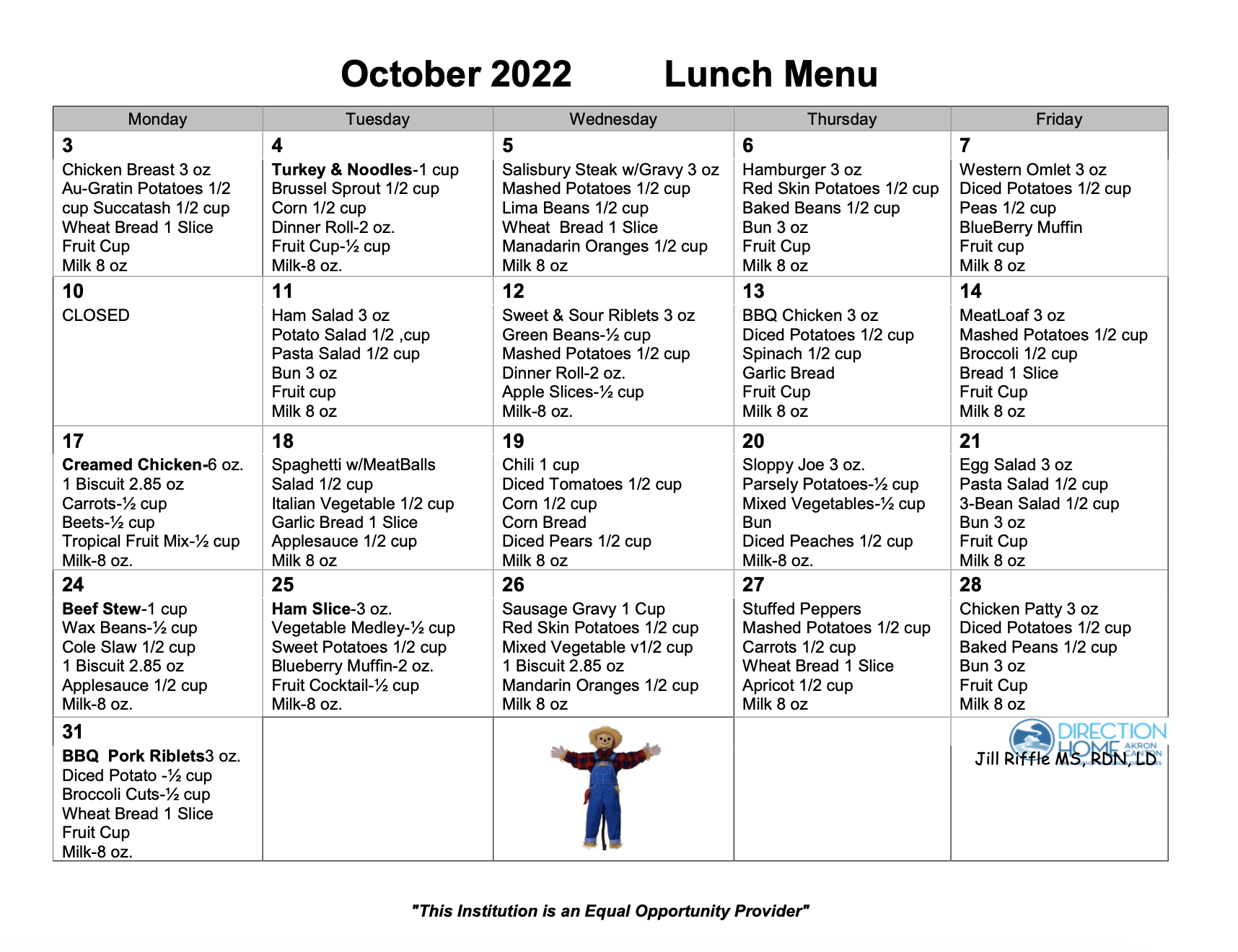 October 2022 Menu